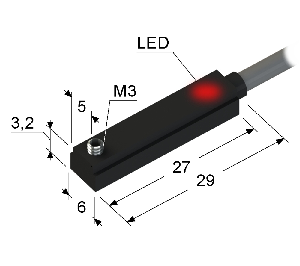 Датчик магниточувствительный бесконтактный датчик с поляризованным герконом осуществляет функцию включения/выключения. Основное назначение - определение положения поршня через стенку пневмоцилиндра.