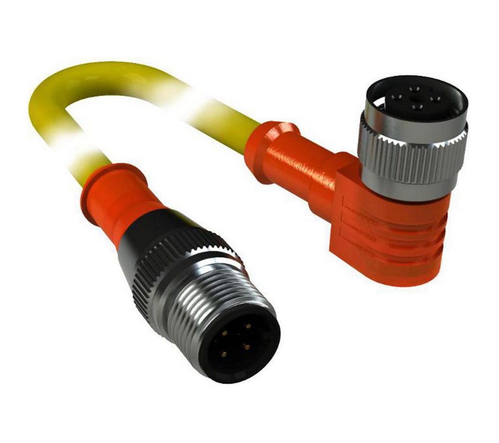 Соединитель с прямой штекерной и угловой гнездовой 4-контактными частями разъема М12.