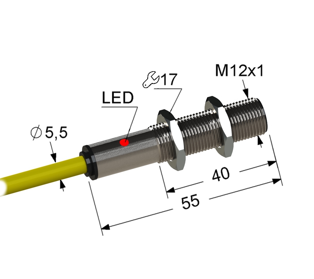 Миниатюрный корпус из пластика АБС и латуни с резьбой М12х1 длиной 60 мм. Может быть настроен на размыкание или замыкание ключа. Тип Т. Барьерный.